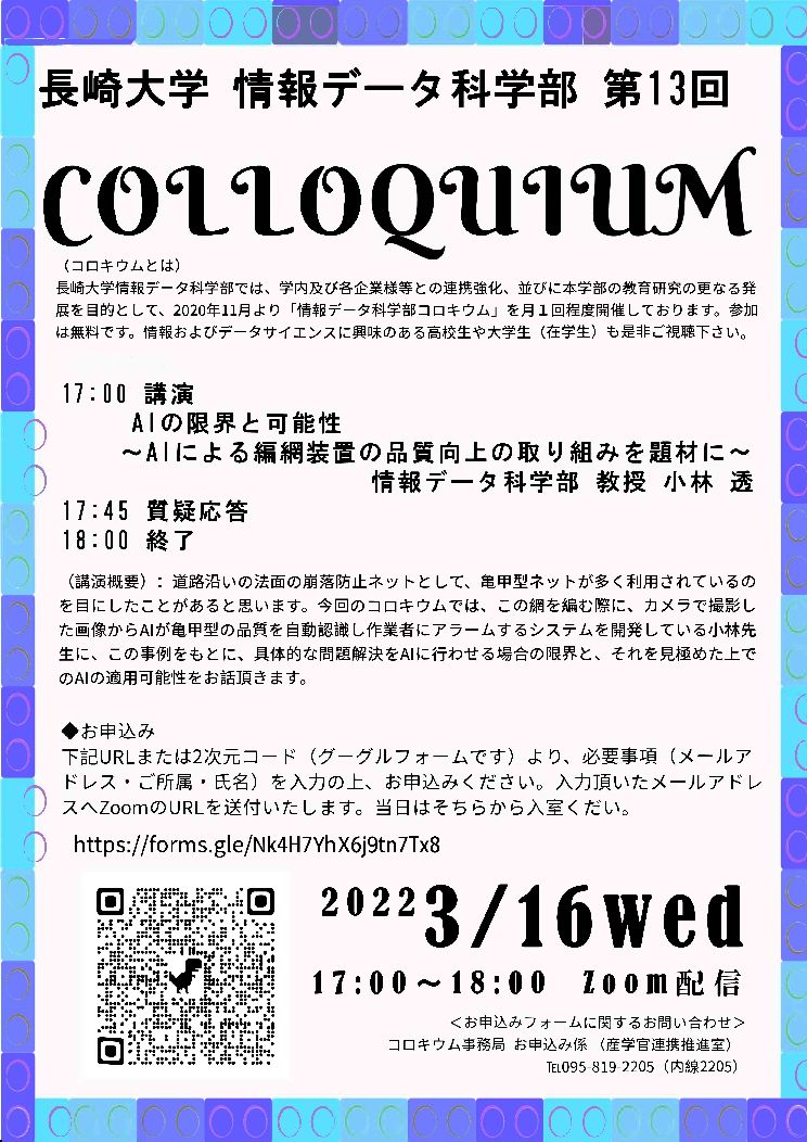 情報データ科学部 第13回コロキウム開催のご案内