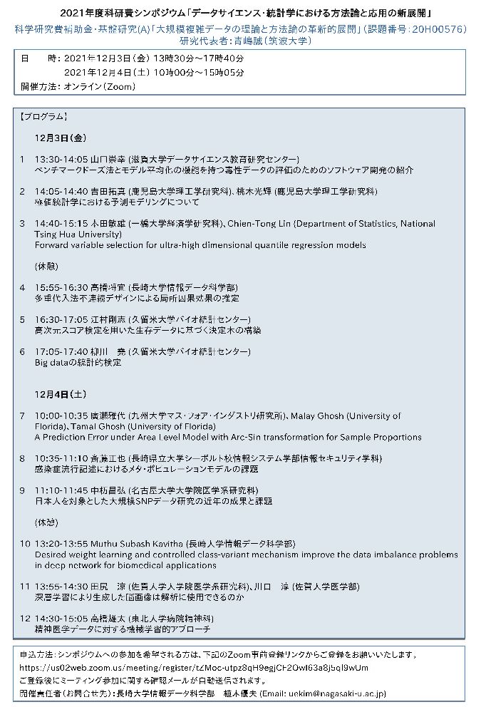 2021年度科研費シンポジウム「データサイエンス・統計学における方法論と応用の新展開」のご案内