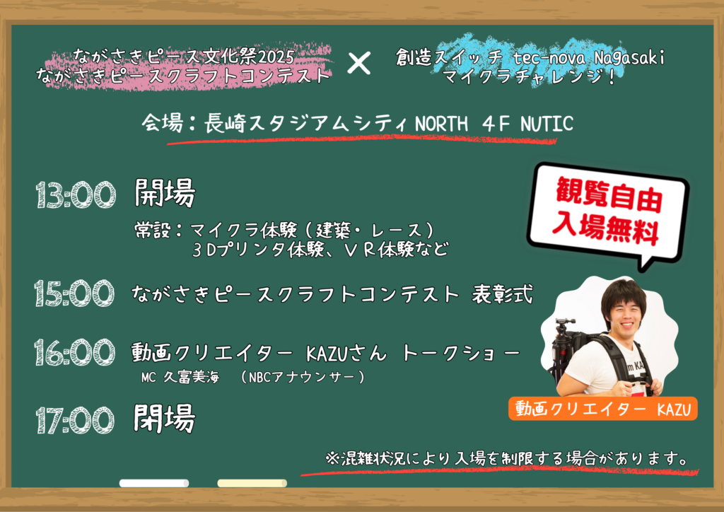 11月3日(月・祝)に長崎ピース文化祭2025 ながさき・ピース・クラフト展コンテスト×創造スイッチ tec-nova Nagasakiのコラボイベントを長崎スタジアムシティNORTH 4階 NUTICで開催しました。