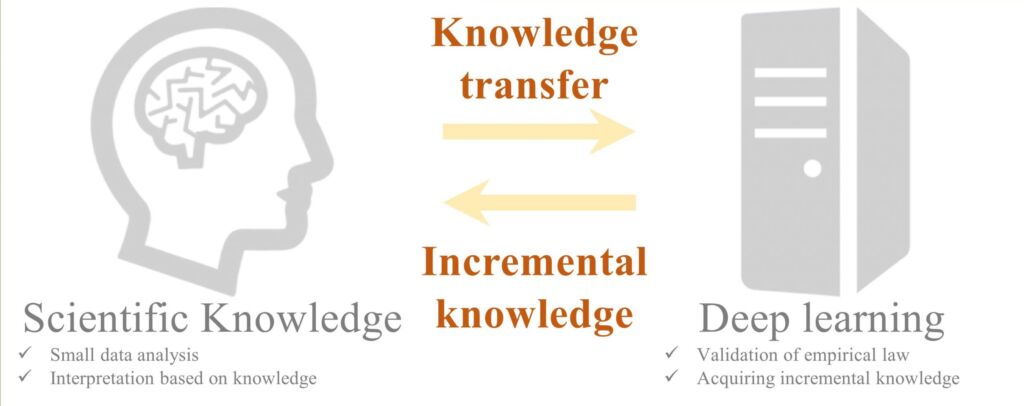 Deep learning enables accurate predictions from large amounts of data. Scientific knowledge and empirical law (domain knowledge) accumulated in various research fields contain information equivalent to large amounts of data. This project aims to interpret data based on domain knowledge and extract incremental knowledge using deep learning.