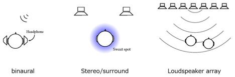 Our laboratory is developing technologies that provide complete immersive experiences using state-of-the-art acoustic signal processing. Most of the existing spatial audio technologies are based on stereo/surround technology. They are effective if listeners are in so-called sweet spot in which listener perceive sound images at pre-defined locations.