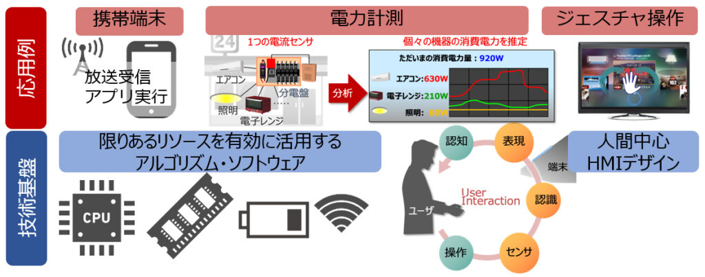 組み込みシステムの限られたリソース(計算パワー、バッテリー、通信速度など)を有効活用するアルゴリズムやソフトウェアを研究する。同時に、ユーザにとって使いやすい人間中心デザインの研究を行う。